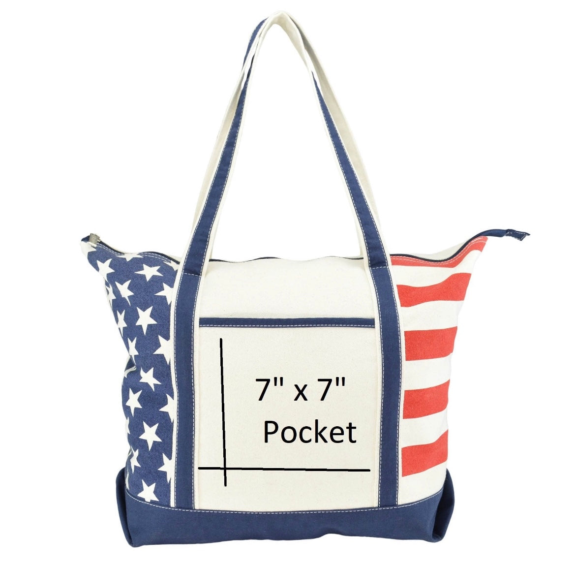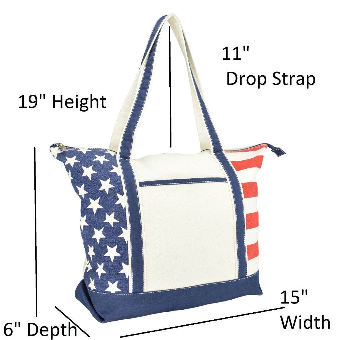 Celebrate your Patriotism and American Pride with our DALIX USA Shopping Tote. Its soft cotton canvas fabric and strong handle strap presents a great feel when taking on a day out of errands. This bag is great for any occasion with its spectacular Stars and Stripes design. Works well with July 4th, showing your pride and more.
